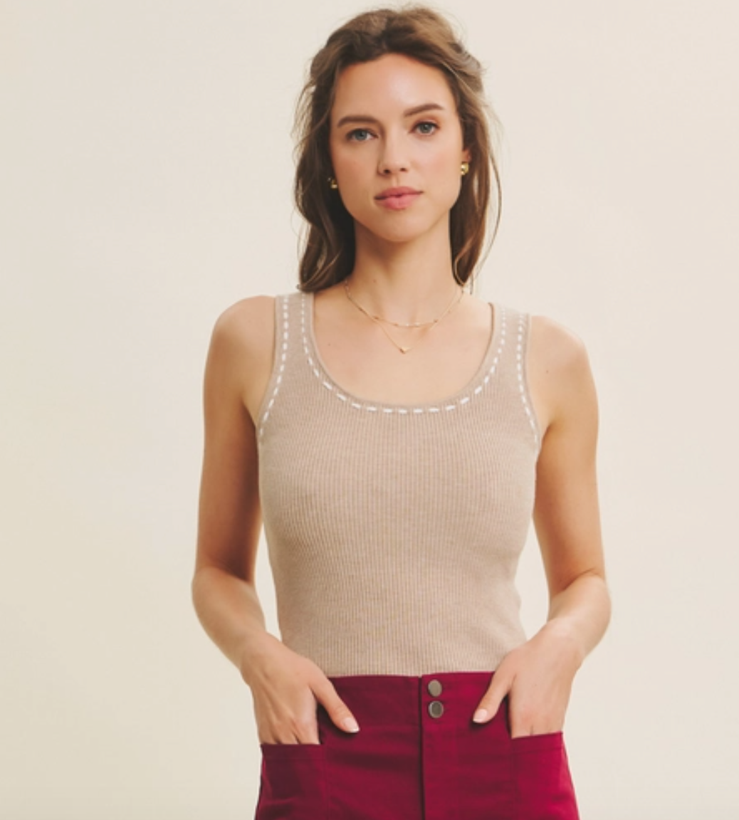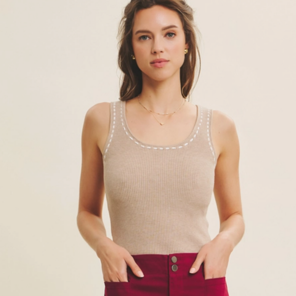 Ribbed Round Neck Sleeveless Top
