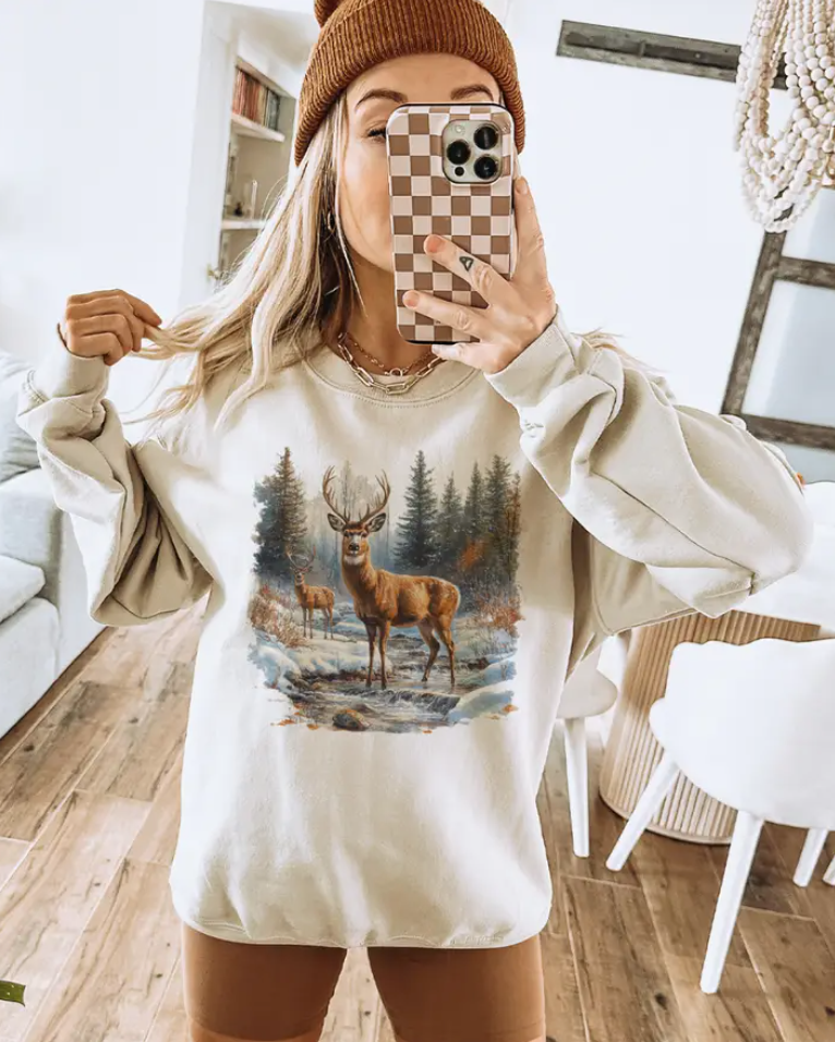 Retro Deer Scene Sweatshirts