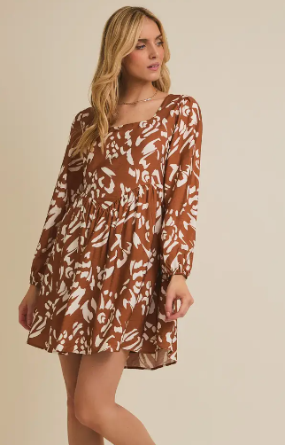 SQUARE NECK RUFFLE TRIM SMOCKED BODICE MINI DRESS