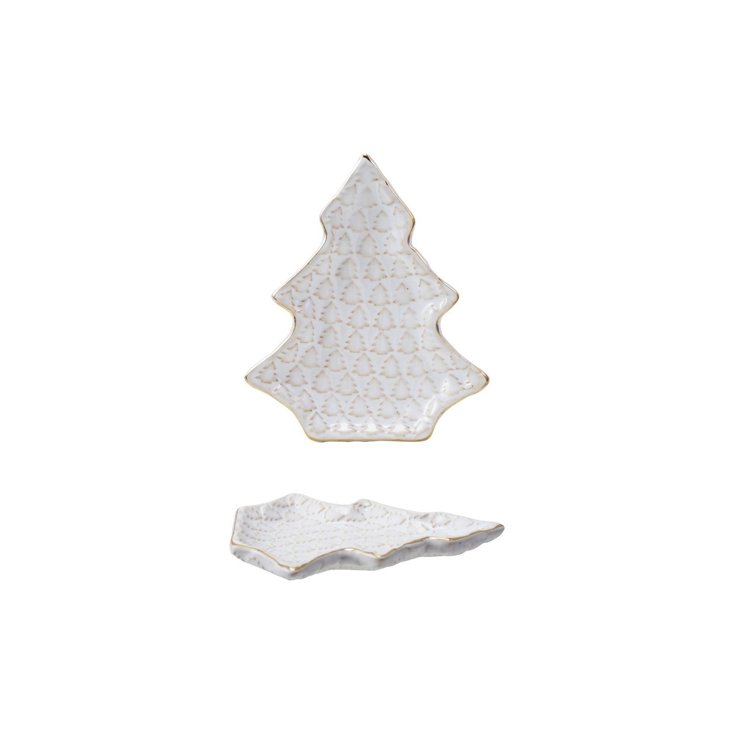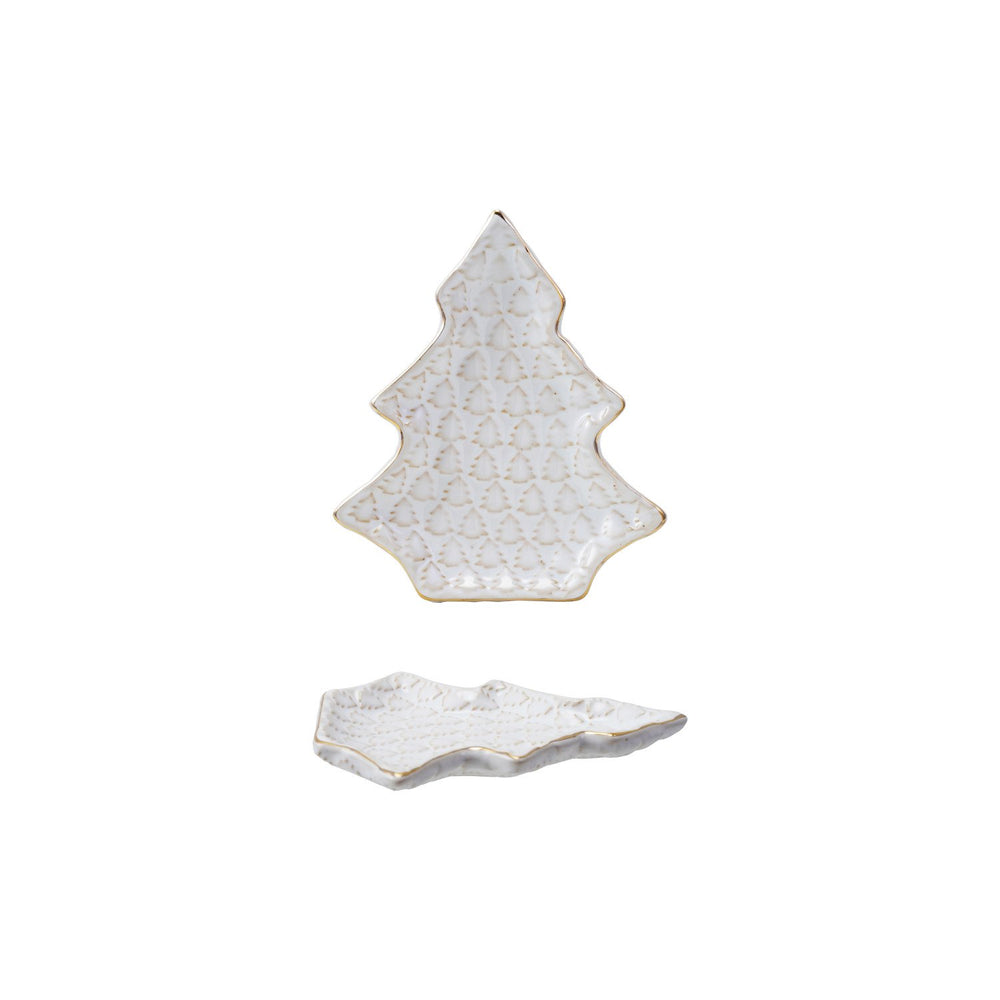 Stoneware Tree Shaped Plate with Holiday Pattern, 2 Styles ©