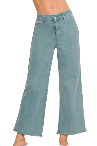 Acid Washed Frayed Cutoff Hem Straight Wide Pants