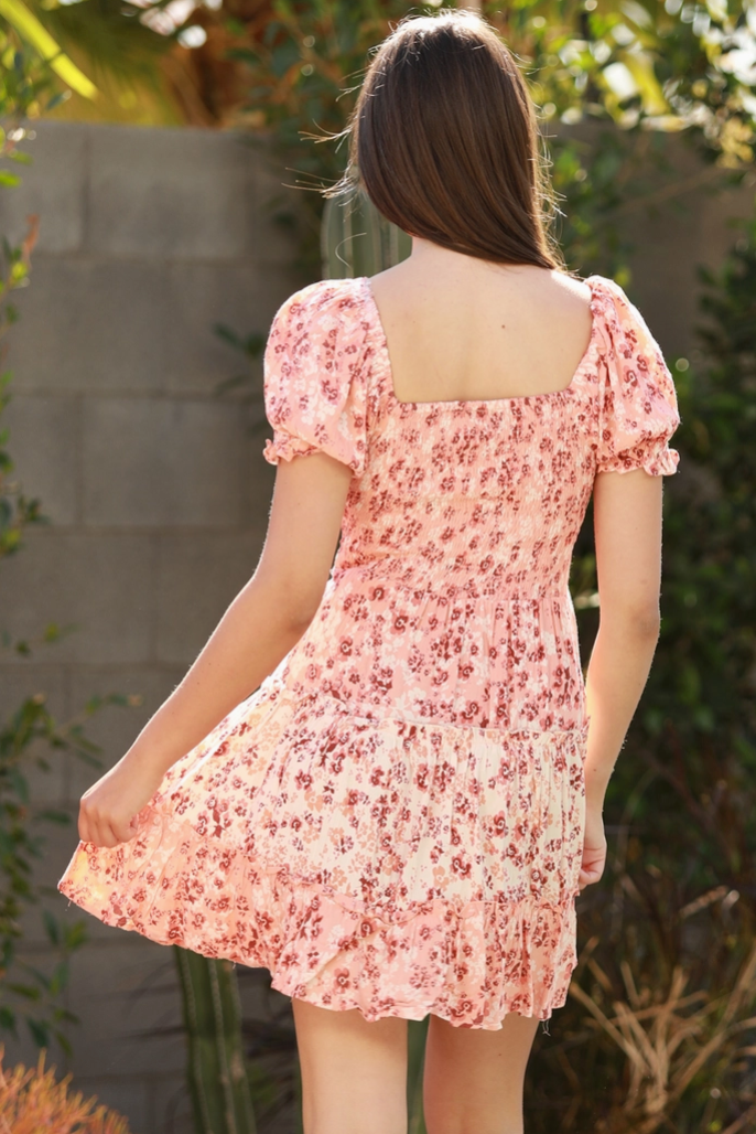 V Neck Twist Front Cut Out Puff Sleeve Dress