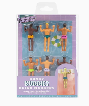The Original Drinking Buddies: They're the original men drink markers for a reason! Why settle for mere drink markers when you can have a miniature entourage of the most dependable men you’ll ever meet at a soiree? Meet Your Party Companions: Chad, Brad, Josh, Ryan, Cody, and Mitch say Hi! Each Drinking Buddy stands proudly at 2.2" - we love our short kings! Universal Fit for Any Glass: Our flexible and durable material ensures a secure fit on a wide variety of glassware, including wine glasses, beer mugs, and cocktail glasses. Enjoy your favorite beverages without mix-ups! Boring Gifting - Not Here: Another scented candle? Yawn. The Original Drinking Buddies are your saving grace for fun gifting. Perfect for housewarming, bachelorette party favors, or birthdays. If you’re looking to elevate your gifting game from predictable to the talk of the town, these Buddies are your ticket to the hall of gifting fame.