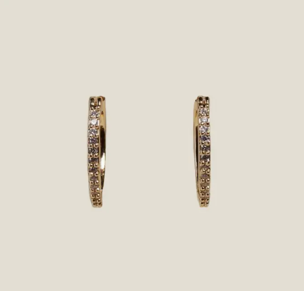 The Pave Huggies are a small gold hoop earring that fits closely to the ear. Our Gold Pave Huggies feature a pave Cubic Zirconia to add an effortless bejeweled accent to any look.