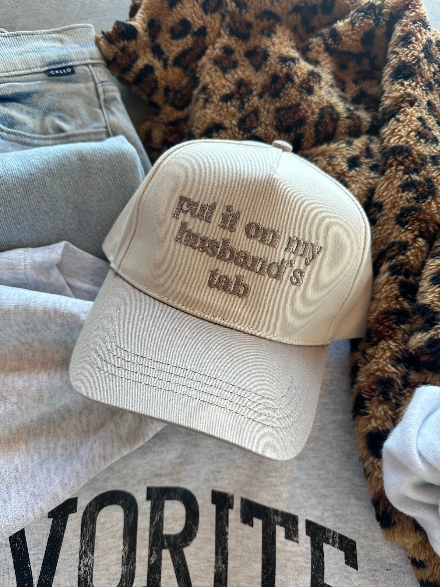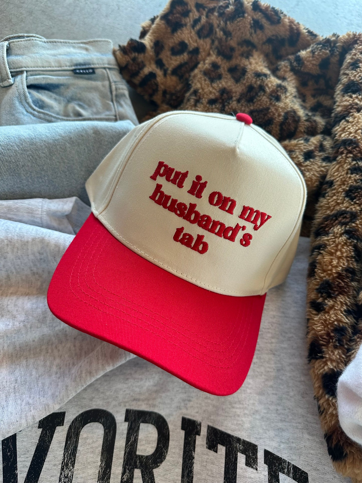 Put It On My Husband's Tab Embroidery Canvas Cap