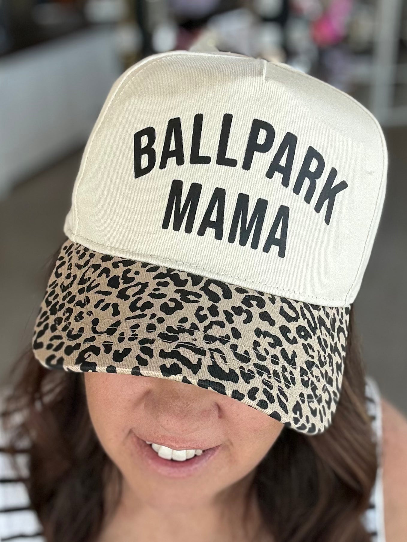 Introducing the Ballpark Mama Leopard Hat. This baseball trucker hat is perfect for any proud baseball mom out there. With a stylish leopard bill, it adds a touch of fierce to any outfit. Show your support for your little slugger with this must-have accessory.