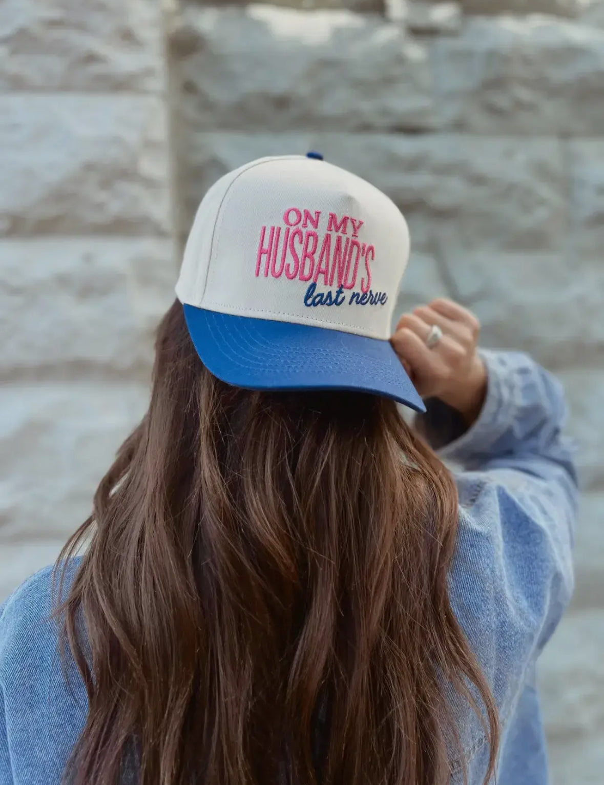 Stay cool and stylish with our On my Husbands Last Nerve Trucker Hat. Made with quality materials, this trucker hat is designed for both comfort and durability. With a sleek design and adjustable fit, it's perfect for any outdoor adventure or casual outing. Show off your sense of humor and keep your head protected at the same time.
