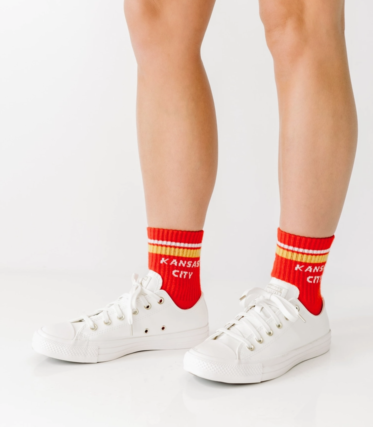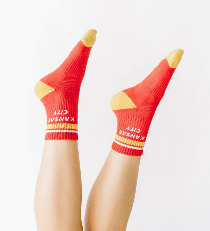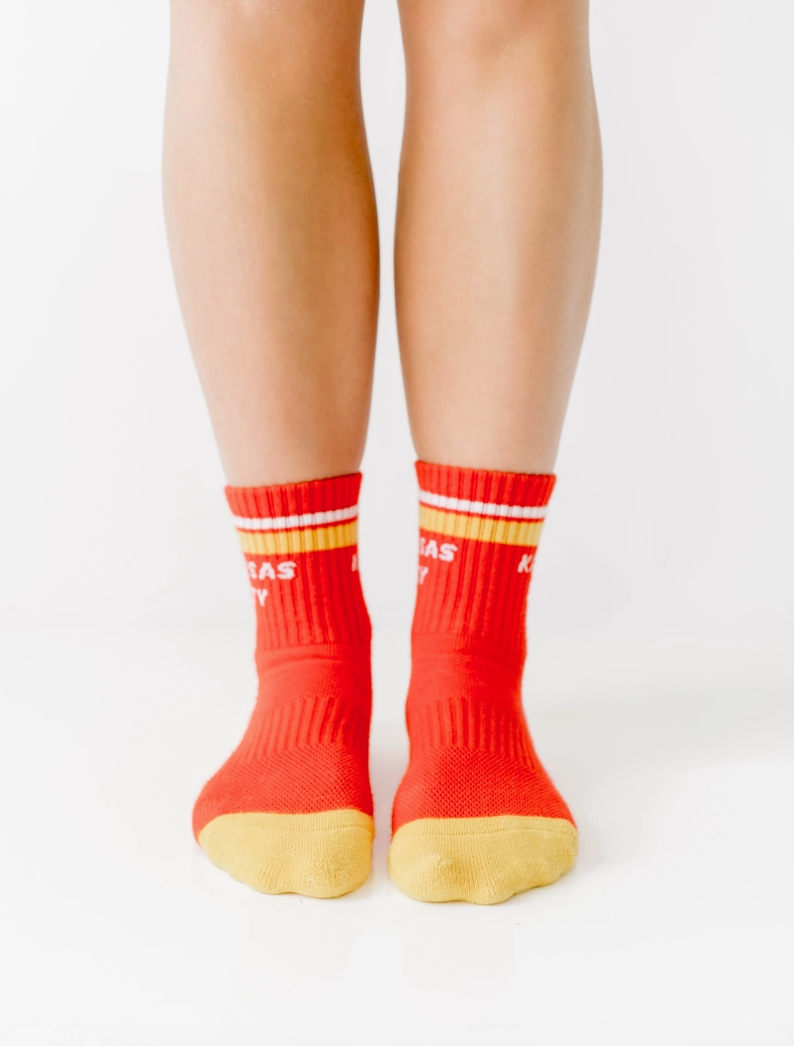 Embrace the vibrant spirit of Kansas City with our Red & Yellow Crew Socks from Carly Rae Studio. Inspired by the city's lively hues, these socks are a delightful blend of comfort and style. Crafted from a soft cotton blend, they ensure your feet stay cozy throughout the day. Designed to fit women's sizes 6-9 and men's sizes 4.5-8, they make a versatile addition to any wardrobe. The playful colors and whimsical design reflect Carly's love for patterns, nature, and sports. Enjoy a touch of artistic charm with every step you take!