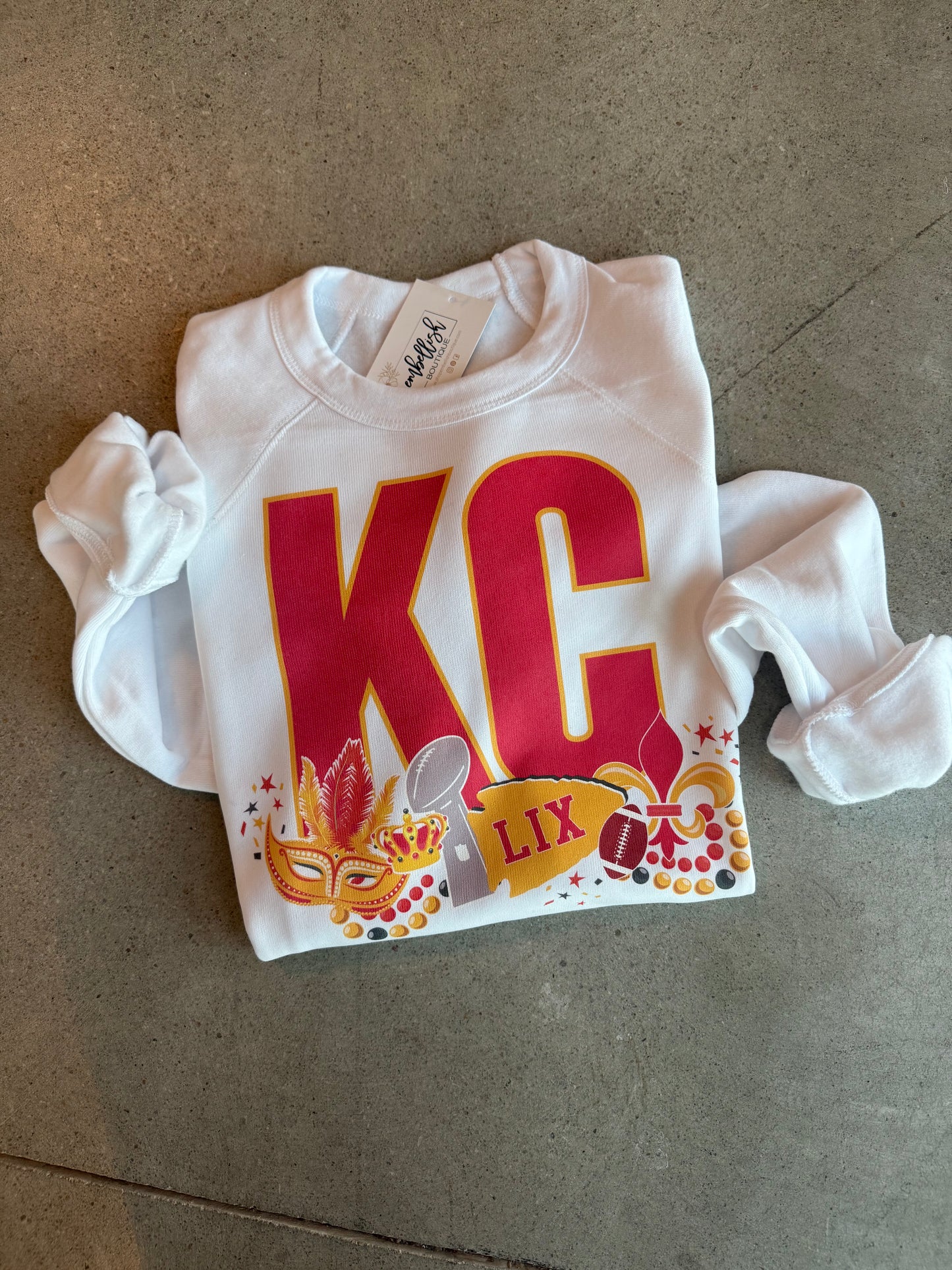 The LIX Kansas City Football sweatshirt. Unisex Bella Canva sweatshirt, this sweatshirt features a unique design inspired by Kansas City football. Experience maximum comfort while showing off your love for Kansas City. Get your hands on this limited edition sweatshirt today!
