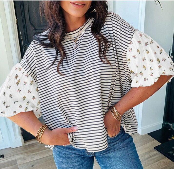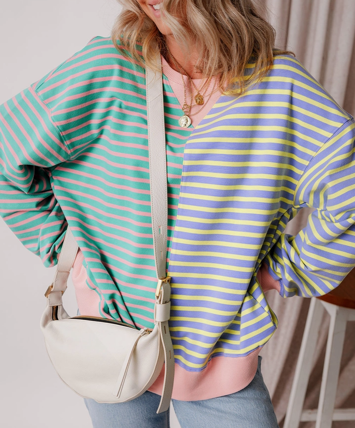 Casual Stripe Colorblock Drop Shoulder Oversize Sweatshirt