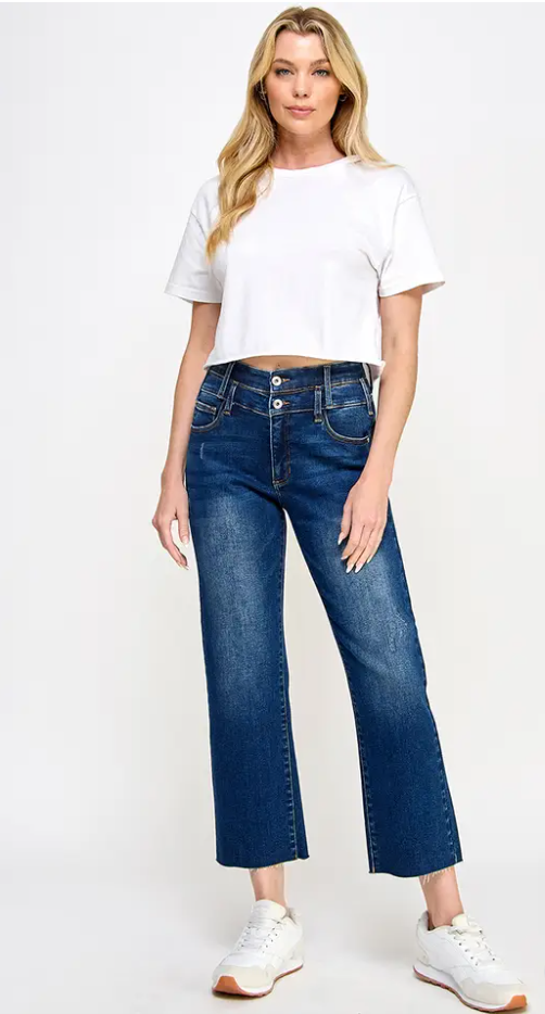 These high-rise straight-leg pants feature a unique double waistband design that enhances fit and comfort. Crafted with super stretch fabric, they provide exceptional flexibility and support, making them ideal for all-day wear. The straight cut offers a timeless silhouette that flatters various body types, combining style with expert tailoring for a polished look.