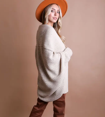 Oversized Open-Front Cardigan Sweater with Pockets
