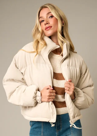 Corduroy Zip Up Cropped Puffer Jacket