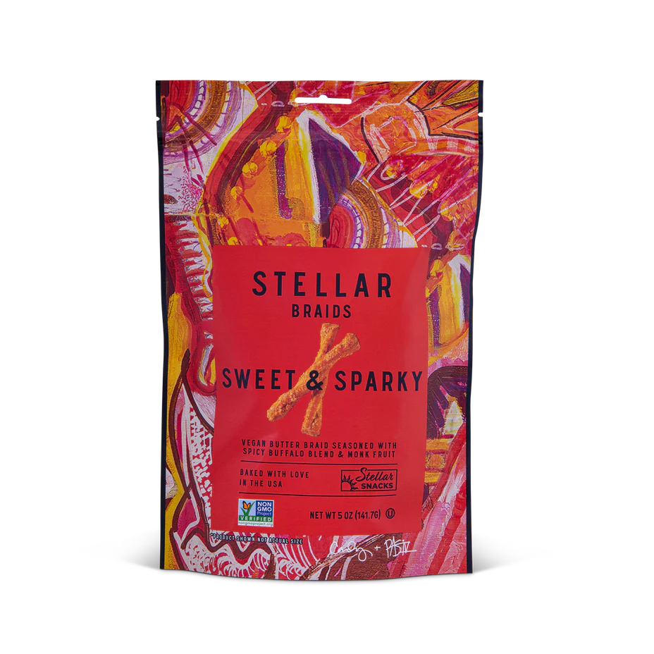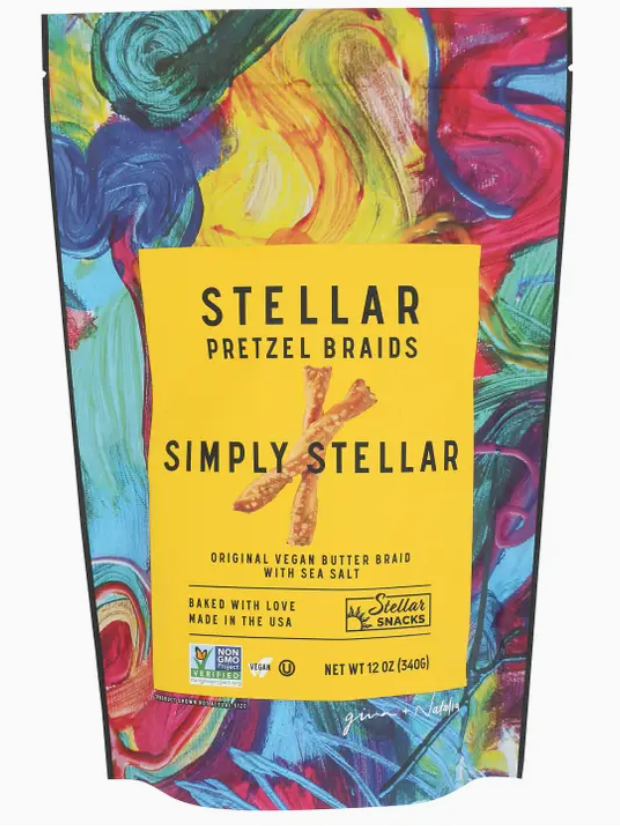 Stellar Braids are Non-GMO Project Verified, Vegan, Kosher and Peanut Free. Each bag supports developing artists.