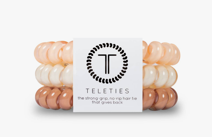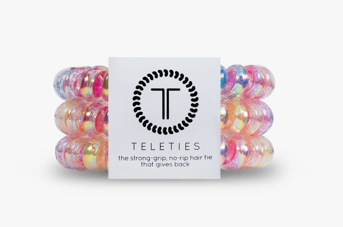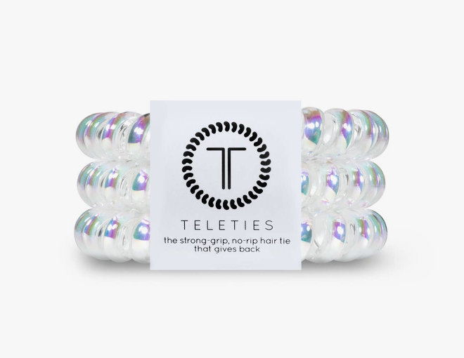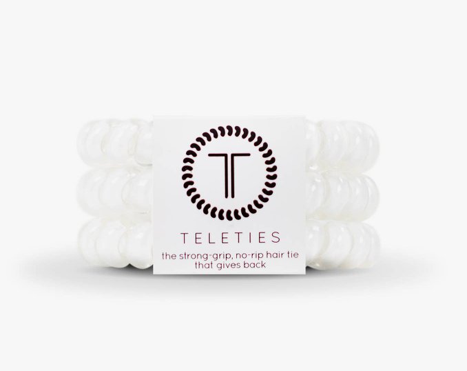 Hold your hair and enhance your style with TELETIES. The strong grip, no rip hair tie that doubles as a bracelet. Strong, pretty and stylish, TELETIES are designed to withstand everyday demands while taking your look to the next level.