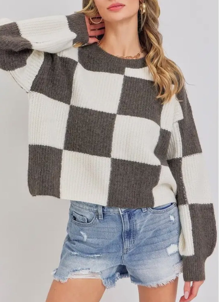 Ribbon Babydoll Gingham Check Short Sleeve Top