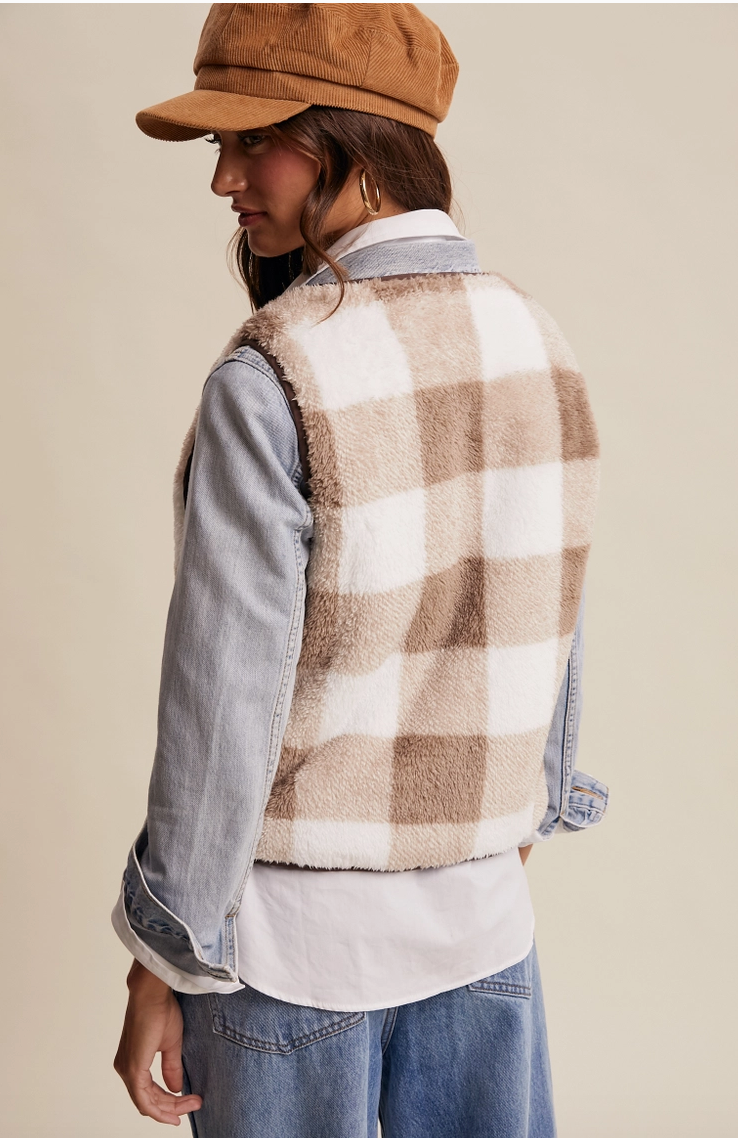 Cozy Checkered Drop Shoulder Round Neck Sweater