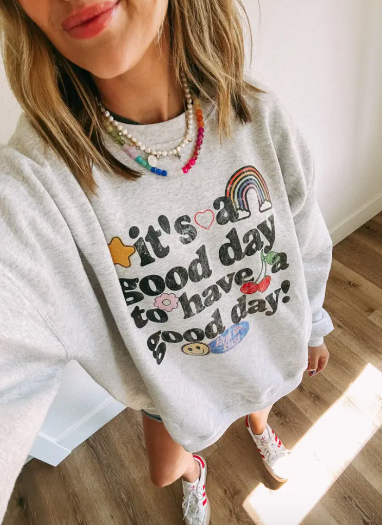 Start your day right with the Good Day Sweatshirt, a wardrobe essential designed for comfort and versatility. Crafted from premium soft fabric, this sweatshirt delivers the cozy feel you crave without compromising on style. Perfect for layering or wearing solo, it transitions seamlessly from casual weekends to relaxed workdays. The classic silhouette flatters all body types while the durable construction ensures lasting wear. Whether you're grabbing coffee or settling in for the evening, this sweatshirt becomes an instant favorite you'll reach for again and again.