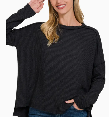 Soft Melange Hacci Exposed Seam Hi Low Top