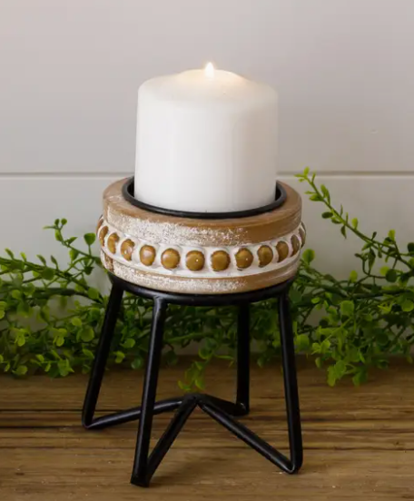 Elevate your decor with our Beaded Pillar Candle Stand. Crafted with intricate beaded detailing, this stand adds a touch of elegance to any setting. Perfect for centerpieces or accent pieces, it effortlessly showcases your favorite pillar candles. Create a warm and inviting ambiance with this stylish addition to your home.