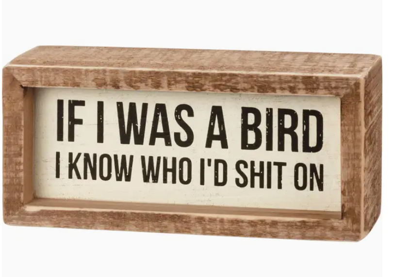An inset wooden box sign featuring "If I Was A Bird I Know Who I'd Shit On" sentiment. Easy to hang or can free-stand alone.